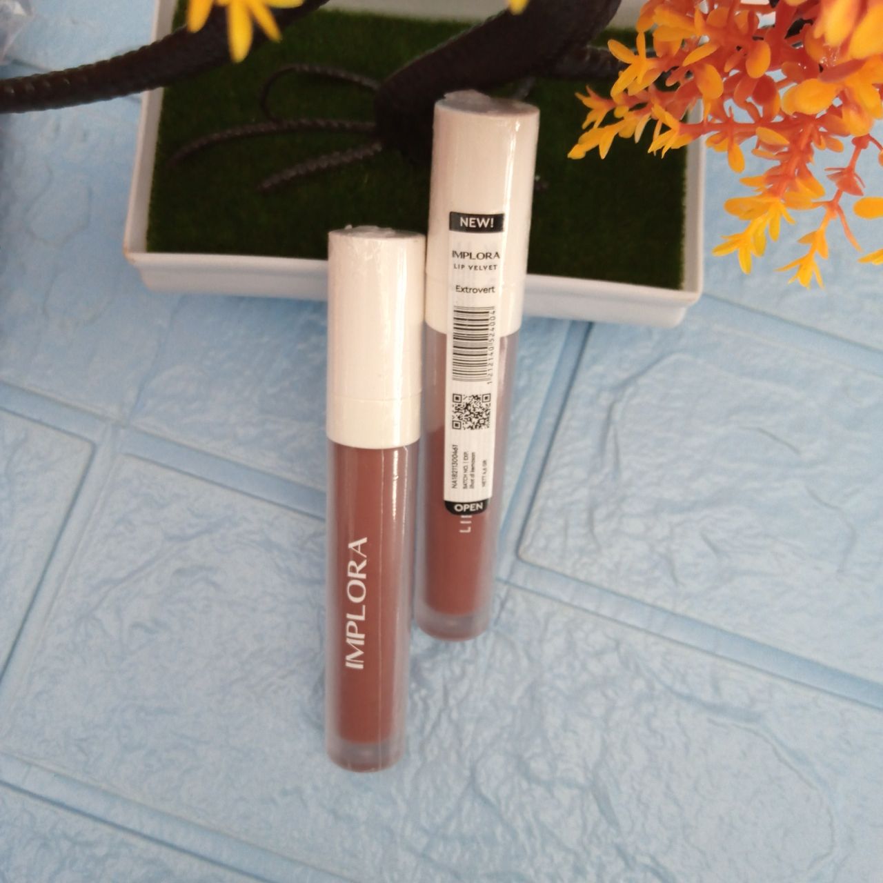 Implora lip velvet shade Extrovert, yang memberikan penampilan bibir tampak memukau dengan kandungan omega 3, 6 dan 9 yang ada didalamnya, ringan di pakai Pigmented Transperproff.