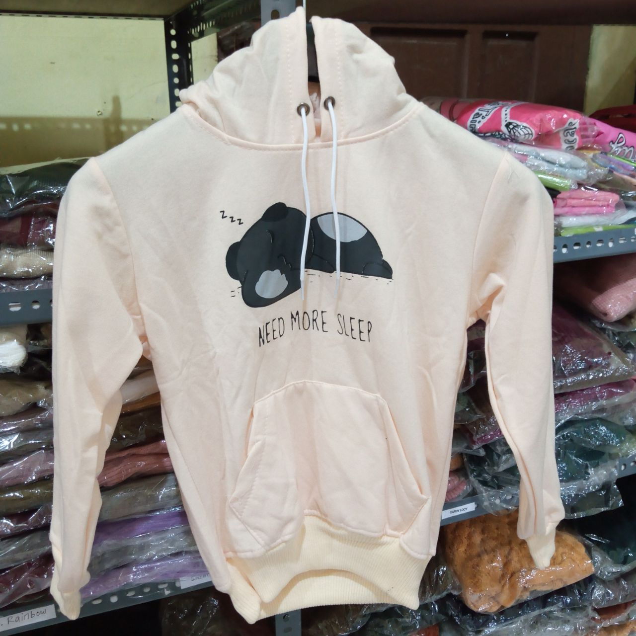 Jaket untuk Anak-anak dengan motif kartun bear sleep warna cream, tersedia juga berbagai karakter kartun berbahan fleece ukuran LD 78cm. Selaraskan gaya si-kecil tetap terlindungi dan makin cakep.