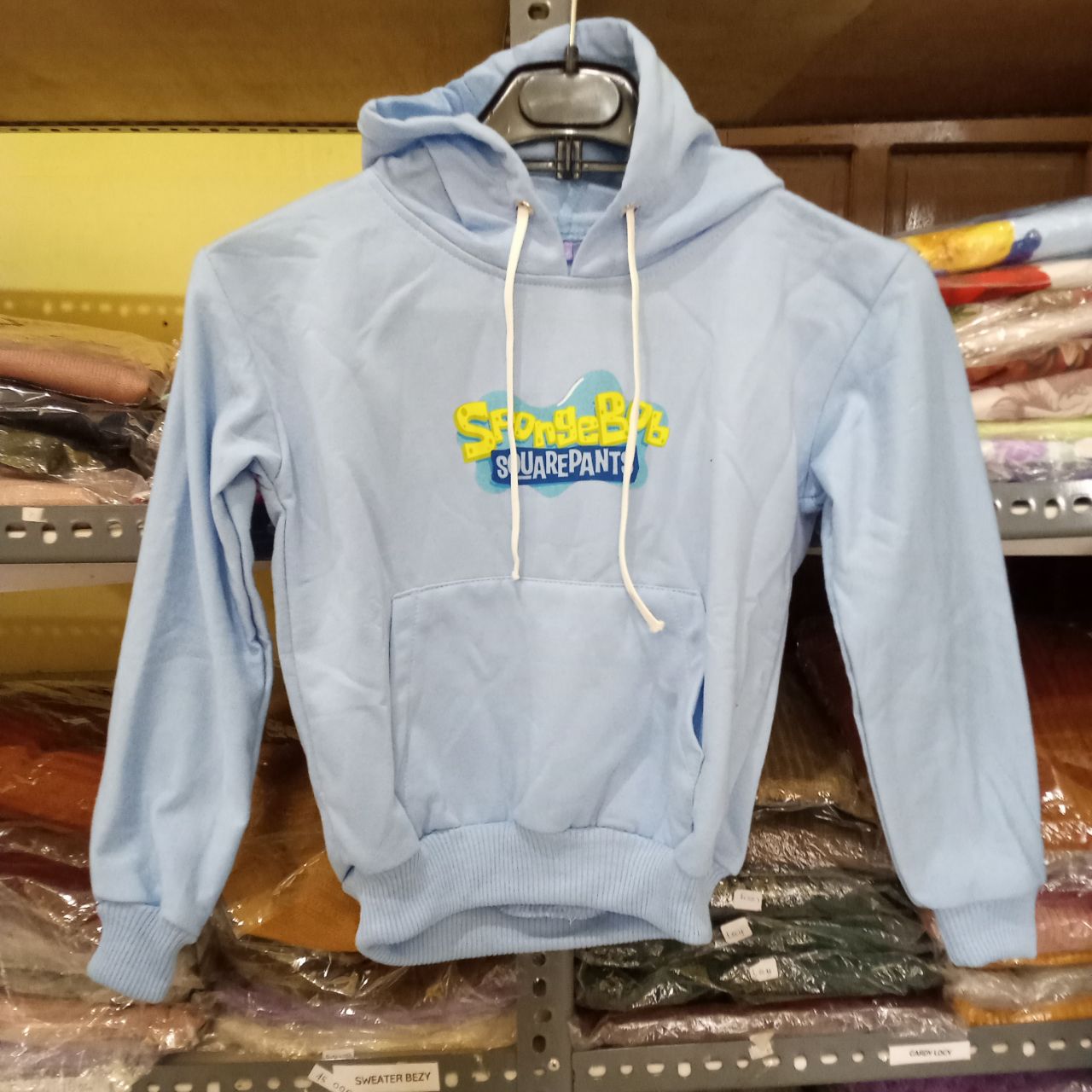 Jaket untuk Anak-anak warna biru disertai motif kartun spongebob berbahan fleece ukuran LD 78cm, serasikan mode dan gaya fashin si-kecil tetap tertutup dan makin cakep.