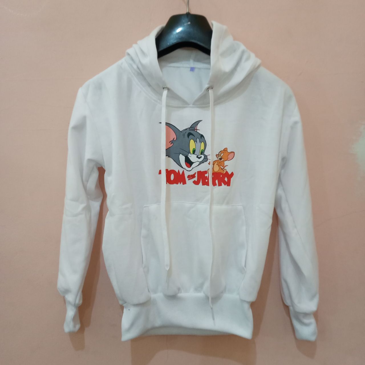 Jaket untuk Anak-anak warna putih disertai motif kartun tom berbahan fleece ukuran LD 78cm, serasikan mode dan gaya fashin si-kecil tetap tertutup dan makin cakep.