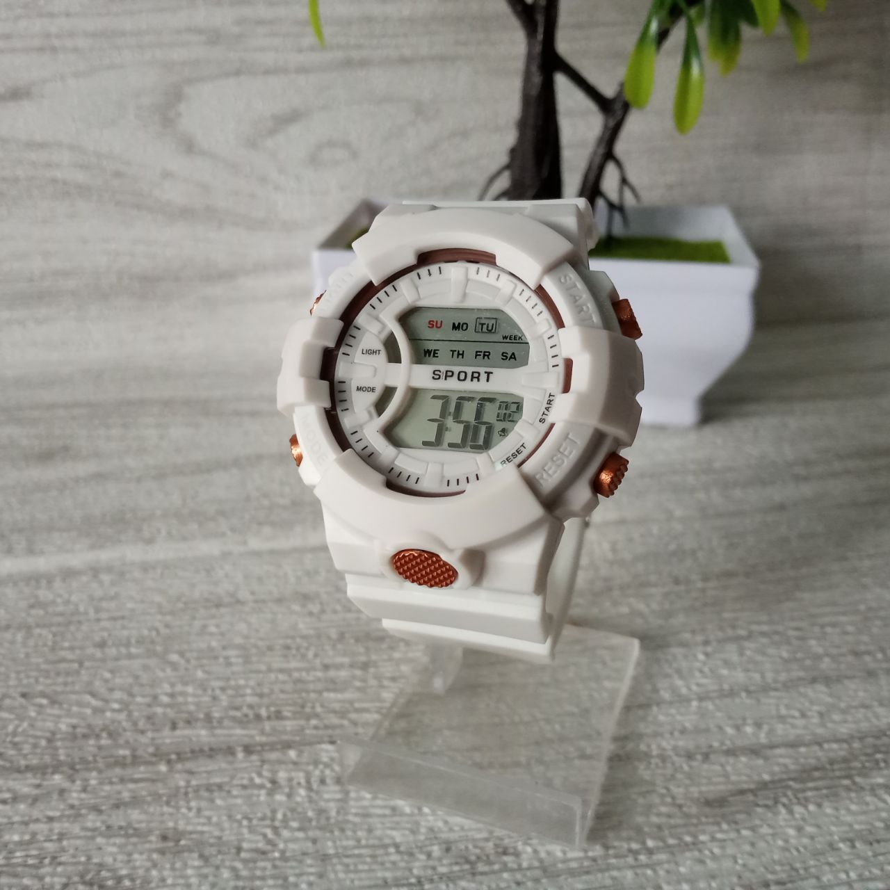 Jam Tangan Cocok untuk pria Wanita berbahan rubber elastis dengan gaya sport trendi, warna putih dengan tampilan digital, Panjang Tali 24cm Diameter 4.5cm,