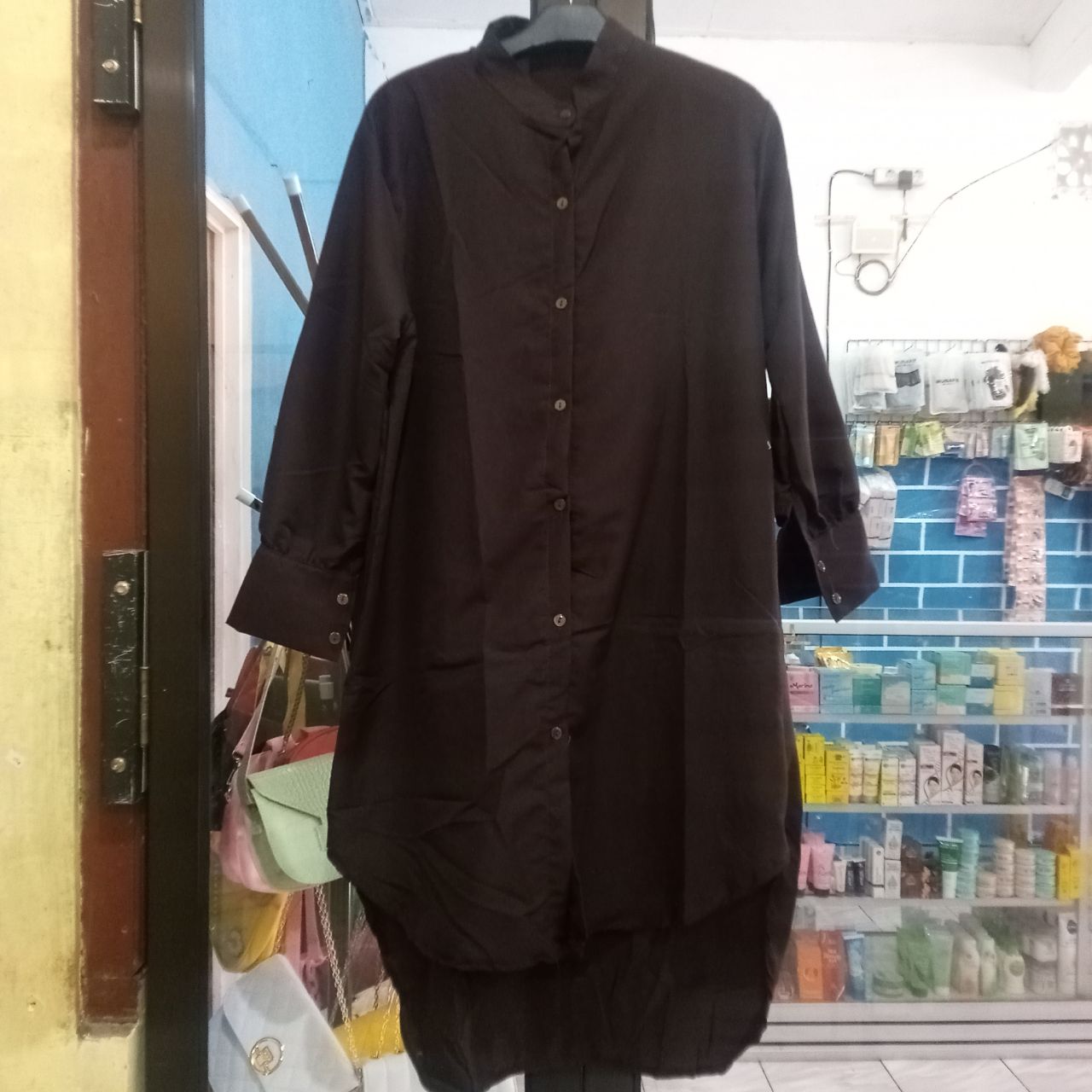 Kemeja atasan aily wanita berbahan katun, warna coklat, Lengan Panjang, Penutup kancing hidup, Bisa dipadukan dengan berbagai bawahan rok panjang, celana panjang atau bawahan kesukaanmu dan Cocok digunakan saat acara resmi atau santai