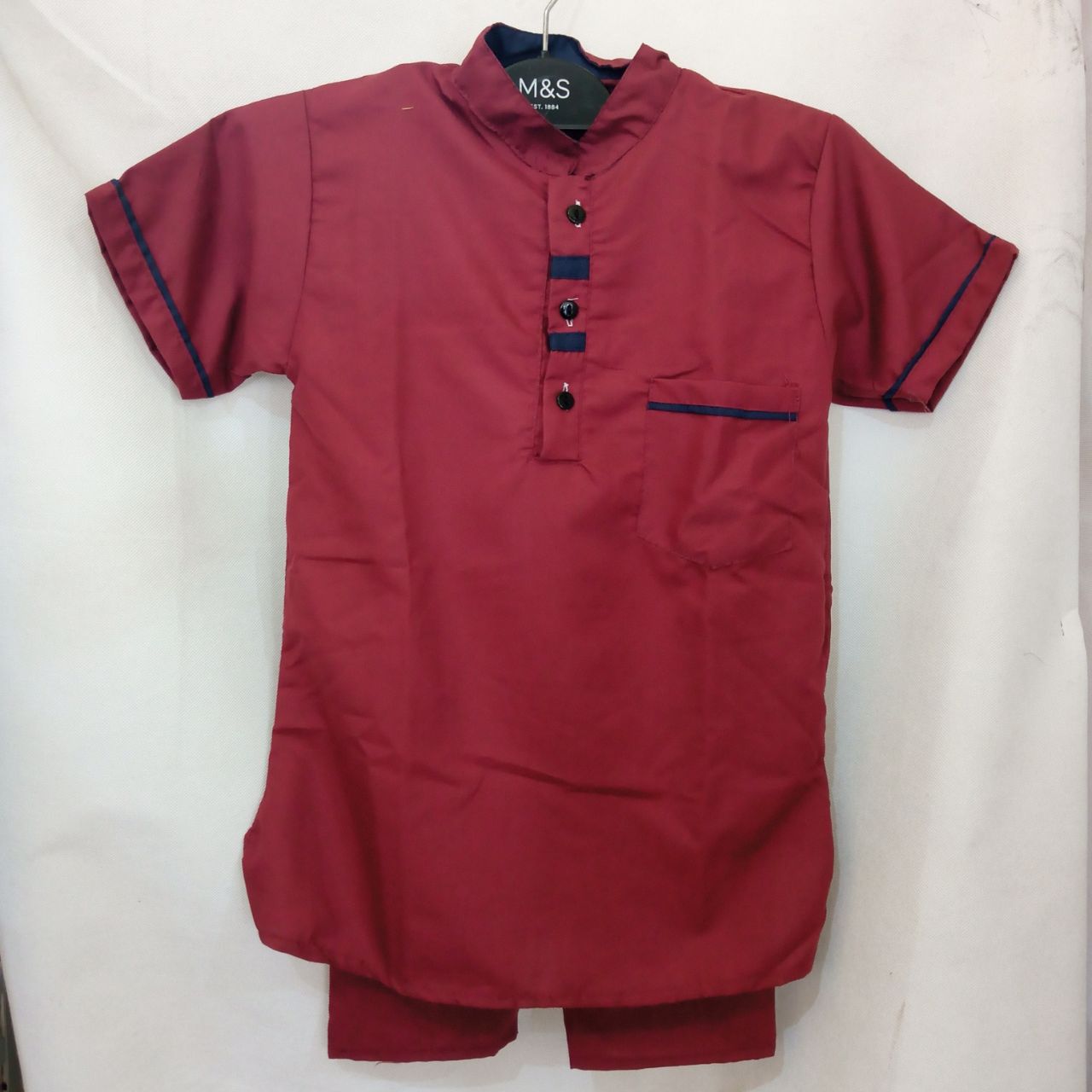Bingung untuk inspirasi busana muslim buat si kecil? coba lengkapi dengan yang satu ini, setelan baju koko dan celana panjang warna marun dilengkapi dengan kancing pada area depan, berbahan katun, dengan ukuran XL lingkar dada 72cm, panjang baju 53cm dan celana 53cm