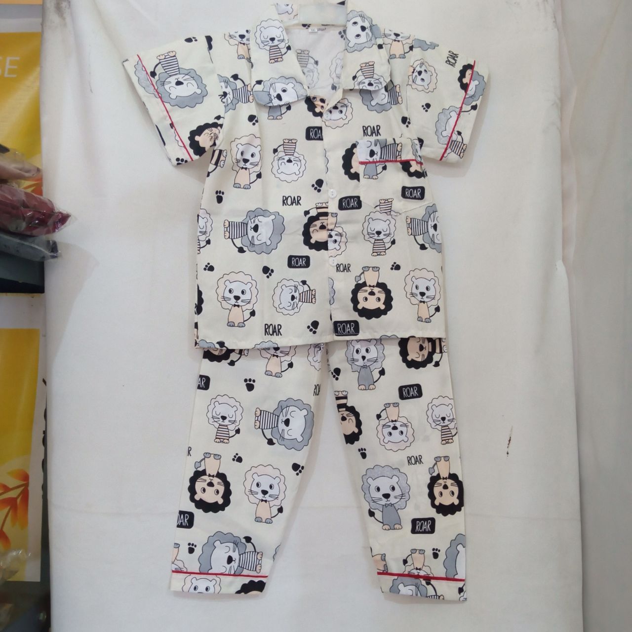 Ini adalah Piyama Anak XL Karakter size: LD75cmxPB49cmxPC67cm, material: katun, color: white, brand: piyamaanakbojonegoro, age_group: kids, style: cutie kids pajamas, gender: unisex, pattern: roar cartoon printing,