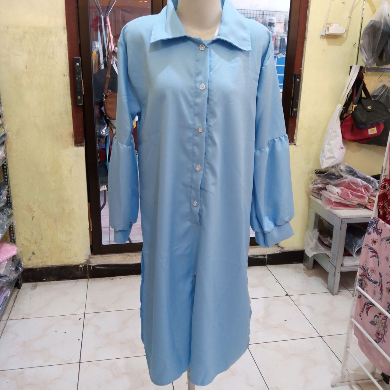 Coba cek pakaian yang satu ini, Tunik dengan warna biru berbahan Mosecrepe Ld 102cm panjang 114cm. Tentu akan menambah elok dan anggunnya beauty kamu.